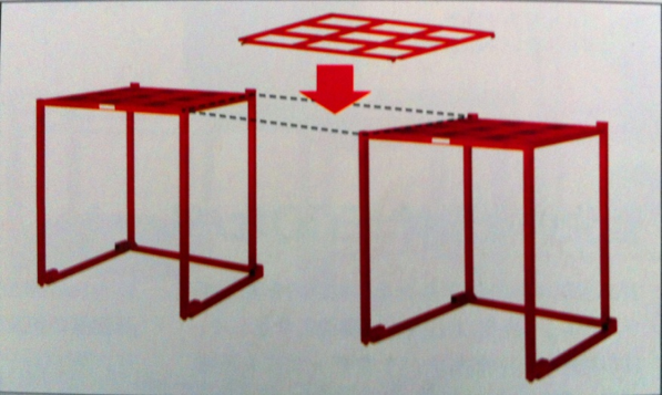 C型巧固架同樣尺寸規(guī)格情況下,價(jià)格更具競(jìng)爭(zhēng)力在兩個(gè)巧固架之間加連接托盤可形成3個(gè)巧固架的工位該產(chǎn)品與普通貨架相比更加具有優(yōu)勢(shì)C型巧固架的連接示意圖